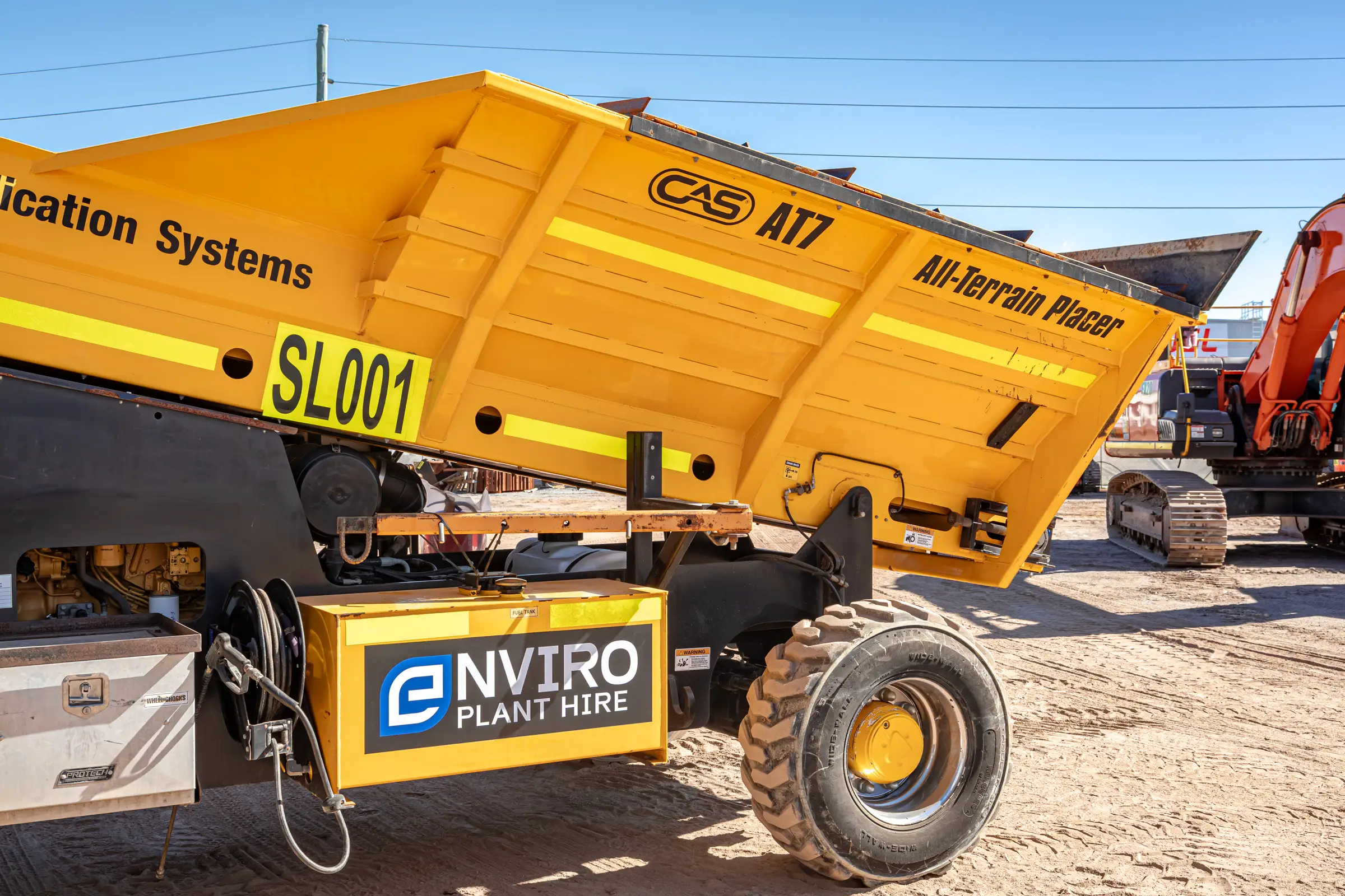 The un-manned, remote control, four wheel drive all-terrain AT7 slinger is ideal for backfilling trenches or placing material in difficult and hard to reach areas.